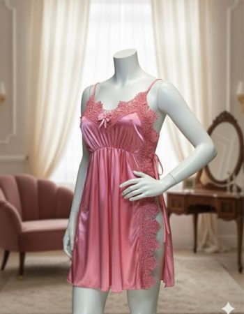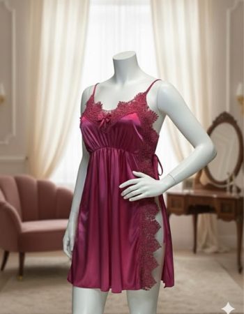 Verrijk je nachtkledingcollectie met dit korte satijnen nachthemd, ontworpen met een prachtig groot kanten detail op de buste voor een gedurfde vrouwelijke touch. Gemaakt van glad, zijdezacht satijn, biedt het luxe comfort en een elegant gevoel op de huid. Ideaal om in te slapen, loungen of voor een romantische avond, combineert dit item verfijning met onweerstaanbare charme.