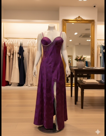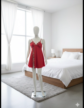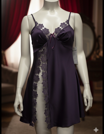 Korte Satijnen nachtjurk met voor-Split – Elegant & Verleidelijk (Paars of Rood)