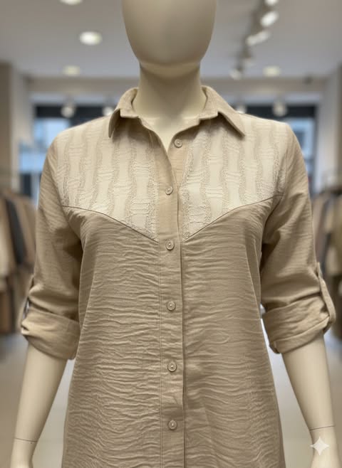 Ontdek de perfecte balans tussen stijl en comfort met deze 2-delige damesset in een tijdloze beige tint . De set bestaat uit een lange blouse met knoopsluiting en een wijde elegante pantalon die soepel meebeweegt met elke stap. De uitgebreide textuur van de stof geeft een specifieke uitstraling, ideaal voor zowel dagelijkse outfits als speciale gelegenheden .