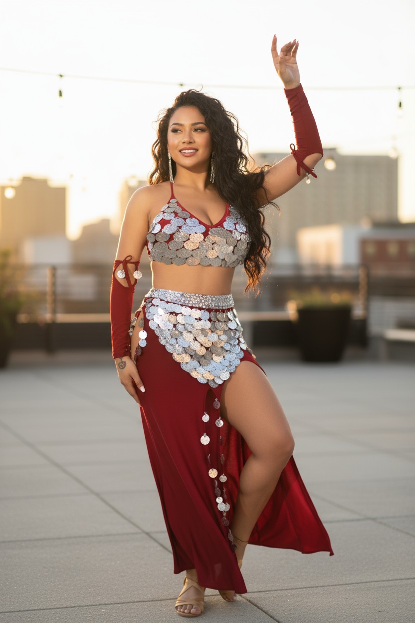 Buikdanskostuum 4-delig – Rouge avec Zilveren Accenten