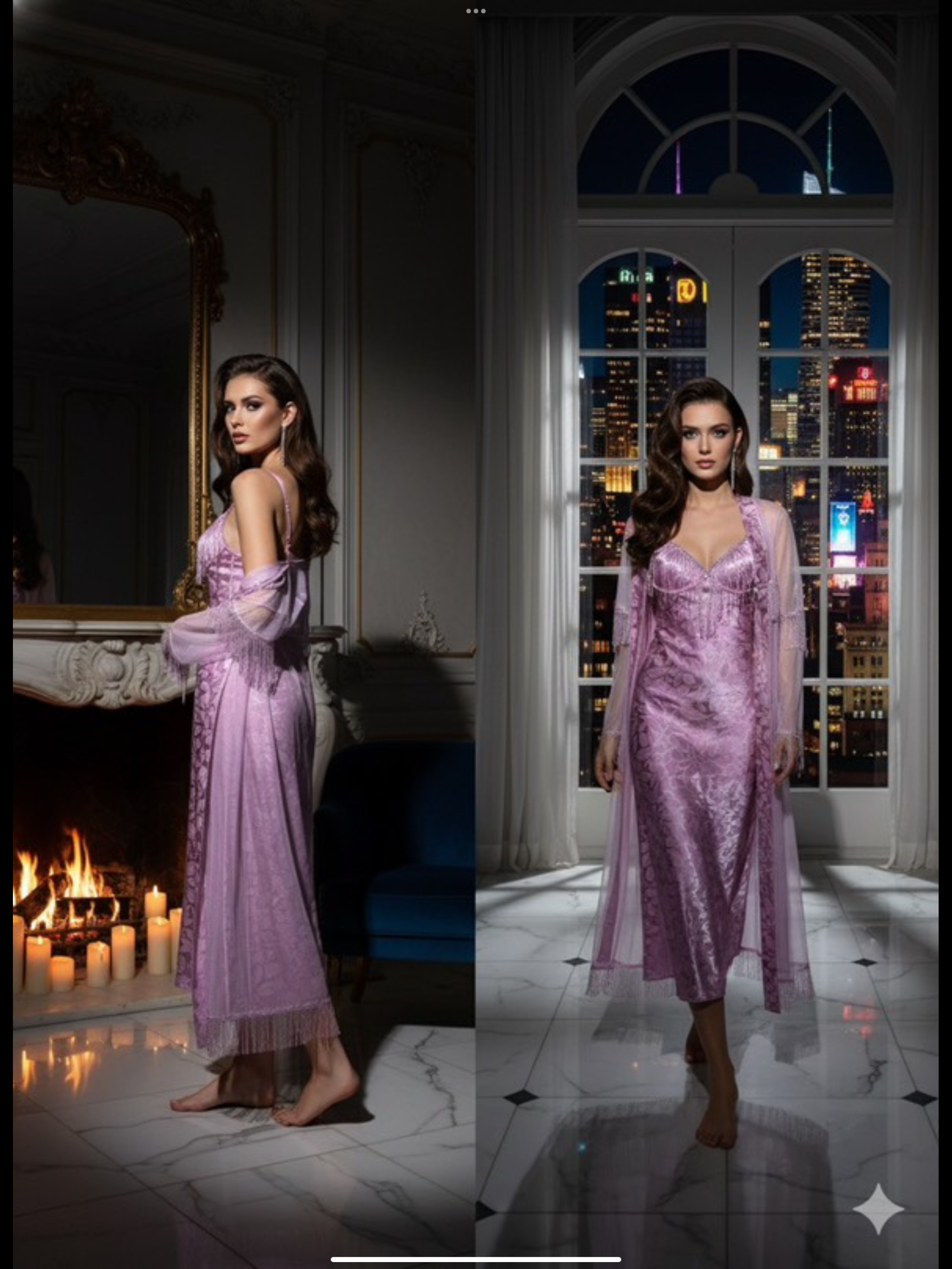 Luxe Satijnen Nachtjurk met Bijpassende Kamerjas – Elegante Nachtkleding voor Vrouwen