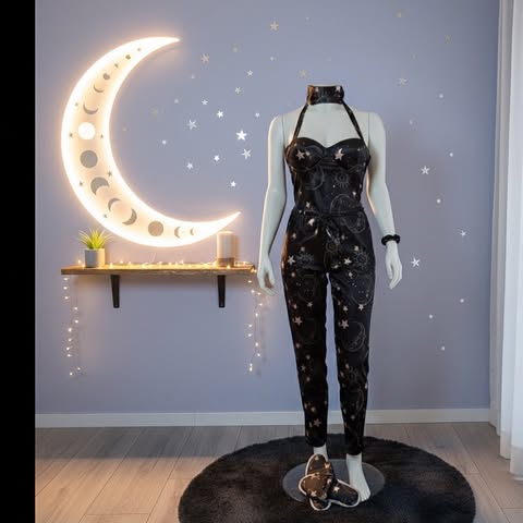 De combinatie van comfort, stijl en een betoverende maan-en-sterrenprint maakt deze set ideaal voor vrouwen die elegantie zelfs in hun slaap waarderen.