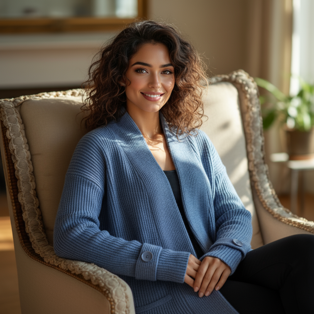 Lange damescardigan – Zacht gebreid vest met zakken