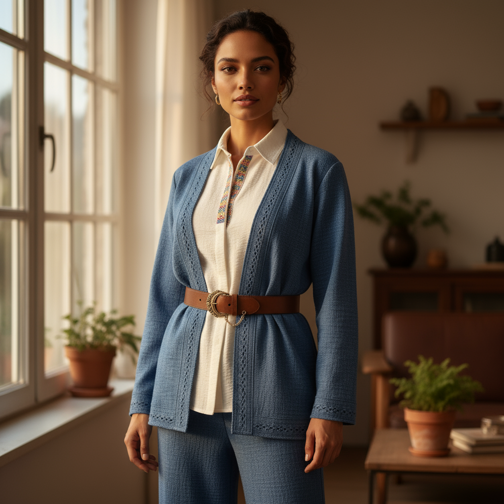 Upgrade je zomerstijl vandaag nog met onze driedelige zomerset met riem en geniet van de elegantie en het comfort dat je verdient. Maak een statement dit seizoen en ervaar de beste van de Danaden-modecollectie!