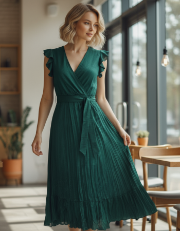 Dames Maxi Wrap Jurk – Elegante Plissé Zomerjurk
