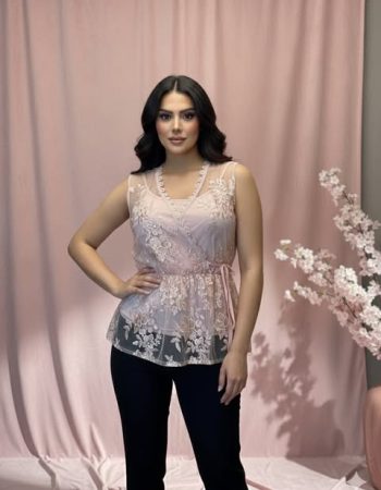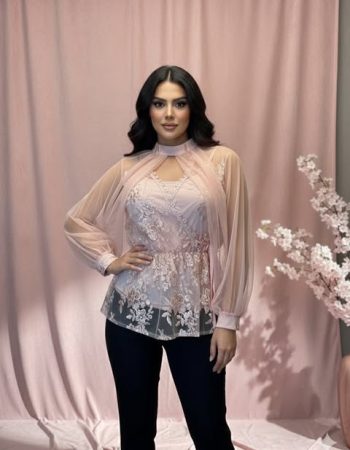 Featuring shimmering silver details and lightweight sheer fabric, this outfit allows freedom of movement while adding a touch of glamour.